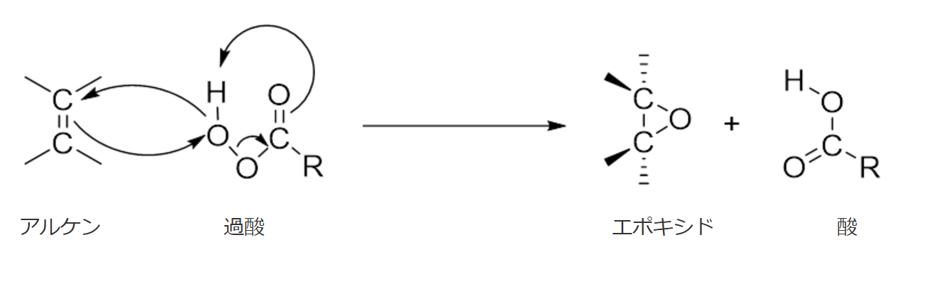アルケンが過酸を攻撃することでエポキシドが生成します。